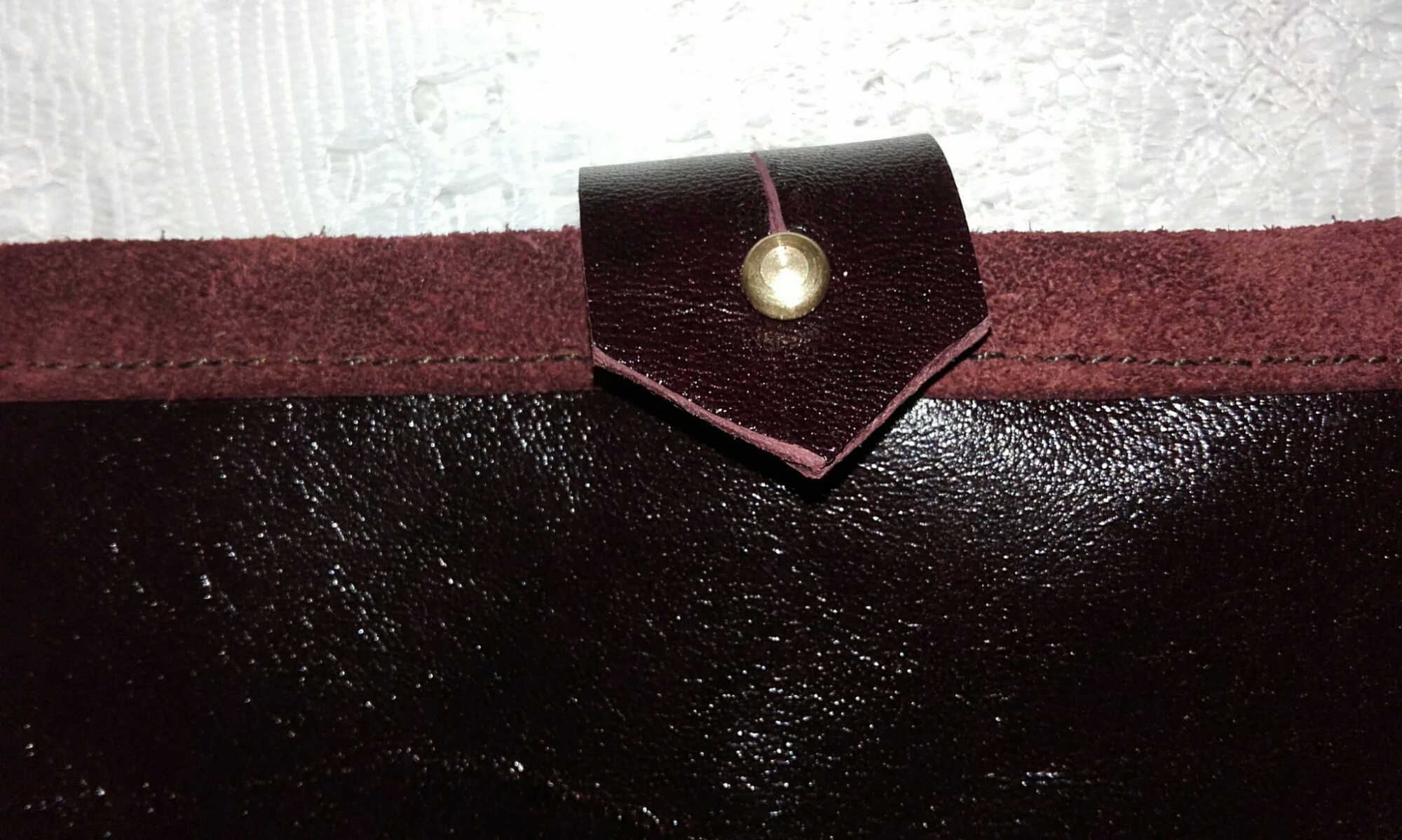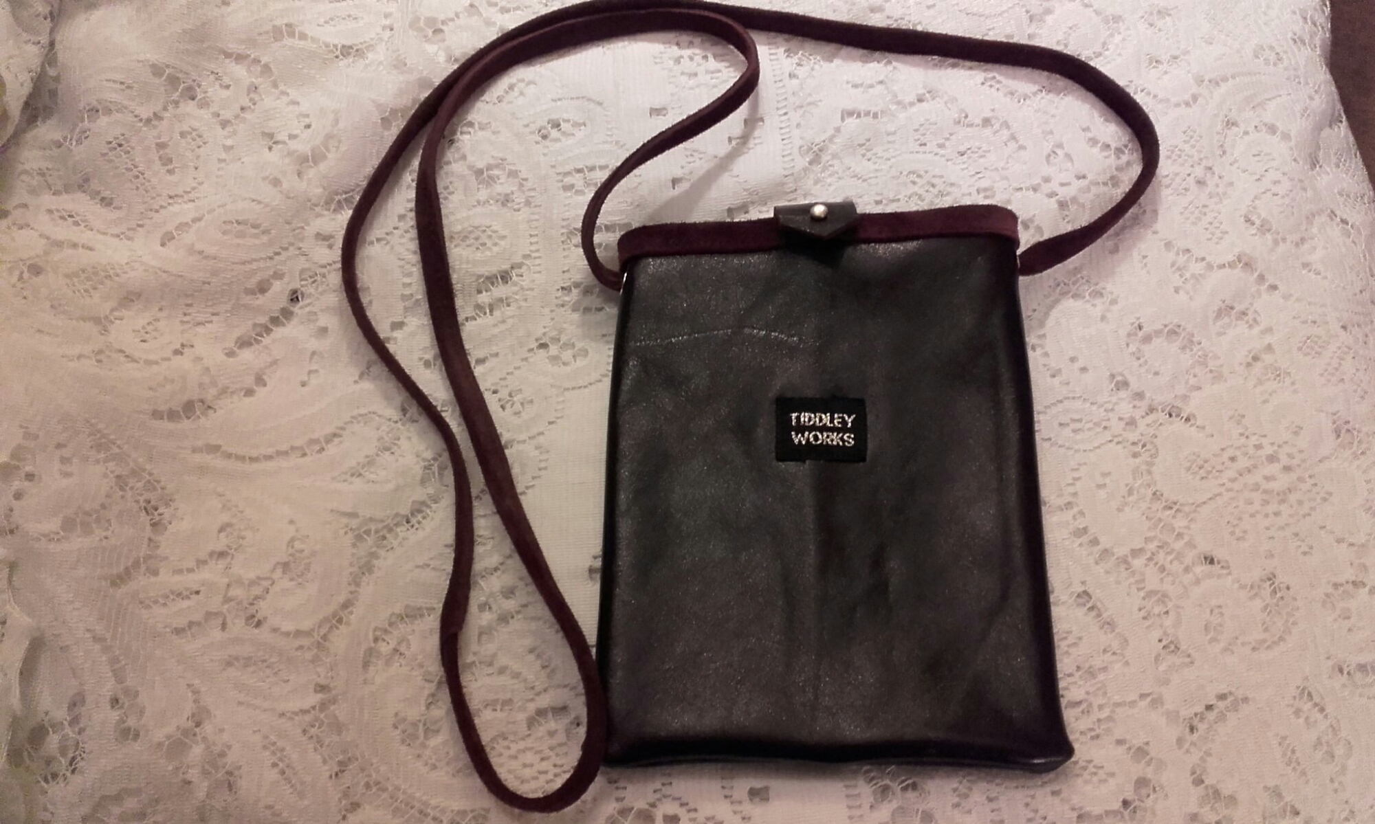 With the addition of a couple of eyelets and a leather strap it became a handy little shoulder bag.  I added a Sam Browne stud and a short fastening strap and we were good to go!